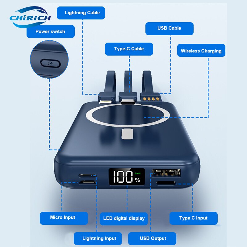 【SG Stock】Magnetic Power Bank Fast Charging With Cable 20000mAh PD20W Portable Wireless Powerbank For iphone Samsun