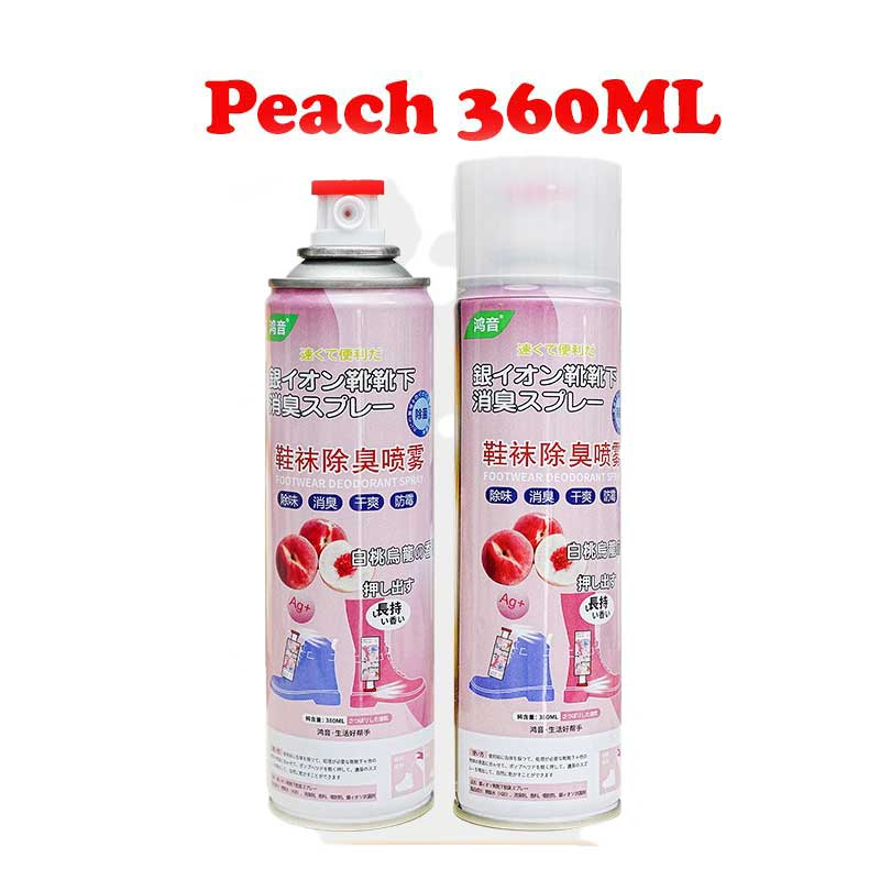 Shoe Deodorant spray, 360ml Shoe odor removal, Shoe freshener, Peach and Silver Ion